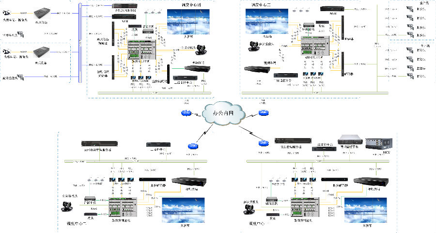 航天科工某部在总部和3个工厂分别建设图像中心,并将4个调度中心进行互联互通,调度中心具备视频会议、视频监控、指挥调度、集中显示、音视频传输等功能,完成多功能网络化分布式系统的总体应用。通过该系统的建设,使总部和3个工厂之间的联系更加紧密,交流更加便利、顺畅,也使得命令的传递更加直观、迅速;在四地的调度中心,都可以实现实时观看研发、实验、生产的各个环节的信息,使四地之间“面对面”讨论沟通成为可能,提高工作效率。